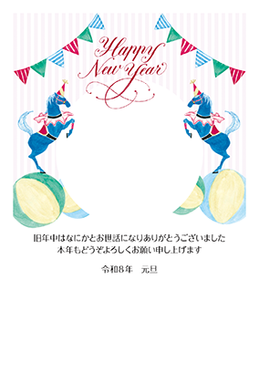 2026年、午年年賀状データ。IllustratorCS2形式データ、高解像度pngデータ、挨拶文なしの高解像度pngデータ、マニュアルをzip圧縮にて。IllustratorデータはAdobe IllustratorCS2以上が必要。pngデータは宛名ソフトなどで使用可能。個人の年賀状印刷使用のみに限定。印刷等、業務用の使用は不可。画像がある場合は、Illustratorに埋込み配置。宛名ソフト使用については、宛名ソフトのマニュアルをお読みください。詳細は、同梱のマニュアルpdfをご覧下さい。