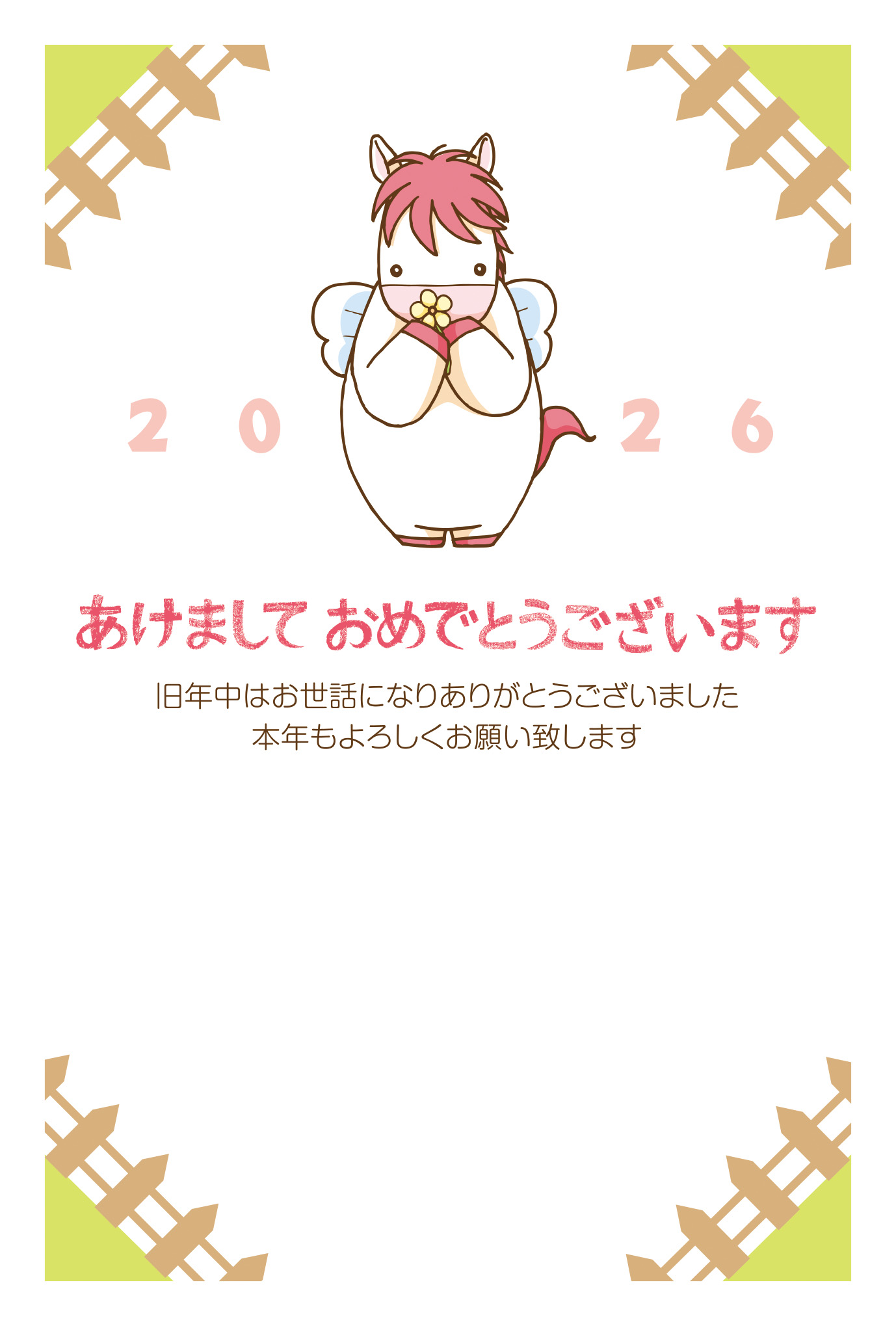 年賀状デザインテンプレート。うま年2026年用。AIデータjpgデータとも無料扱い。