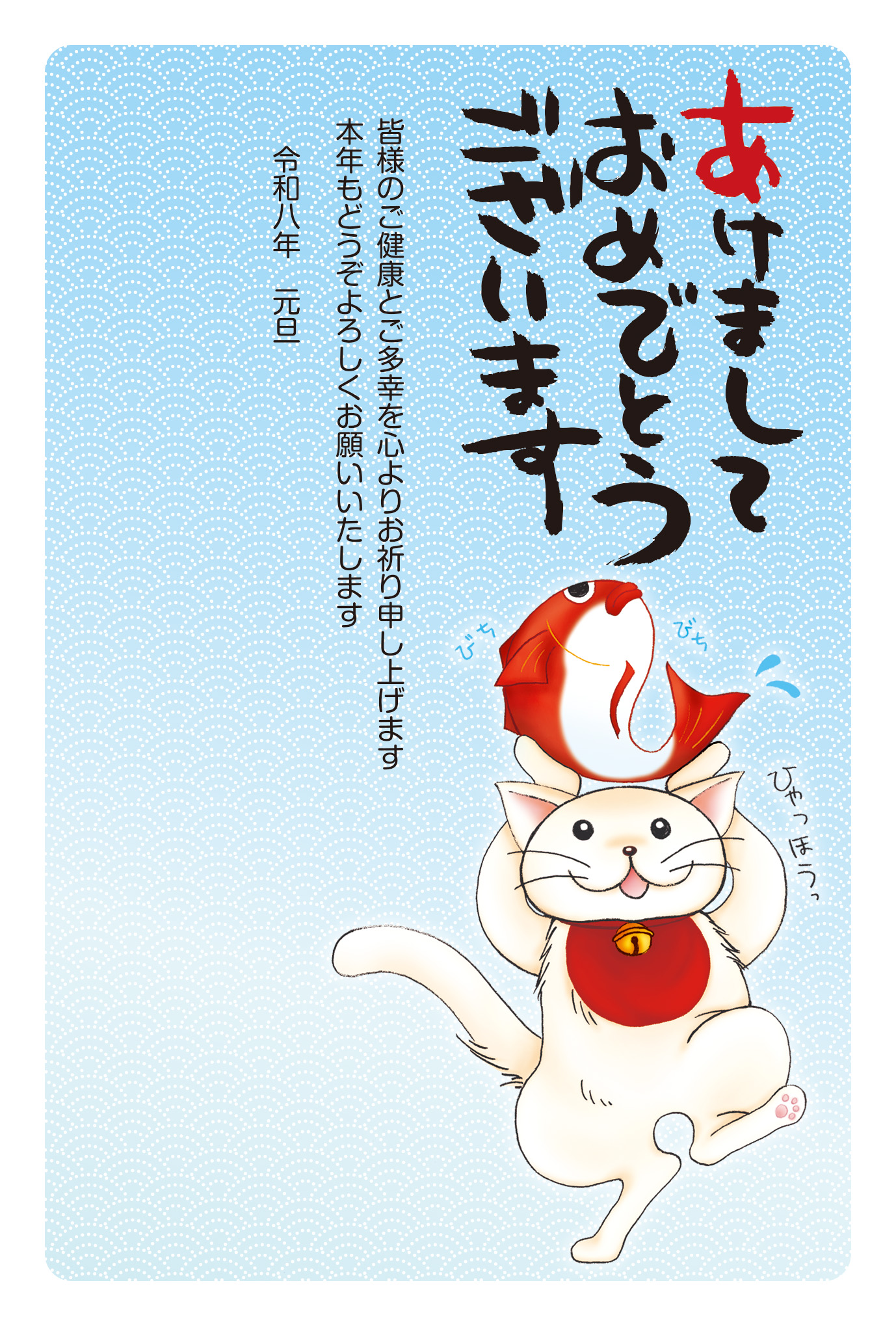 大きな鯛に思わず小躍りしてしまう白猫の年賀状。ちょっとふざけた感じが好きなのは今も変わりません。子供の頃から猫アレルギーで、好きなのに5分以上のお触りができなかった私は、どうやらアレルギーが消えた今はめっっっっっっちゃ猫好きです愛犬も世界で一番愛しているけども。