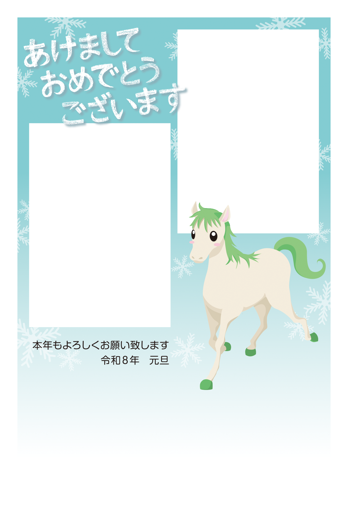 年賀状デザイナーを始めた頃はまだイラレのパスで絵を描いたことはなかったんですが、午年はちょっと慣れてきてるのかなと思います。縦長の写真が2枚入ります。
