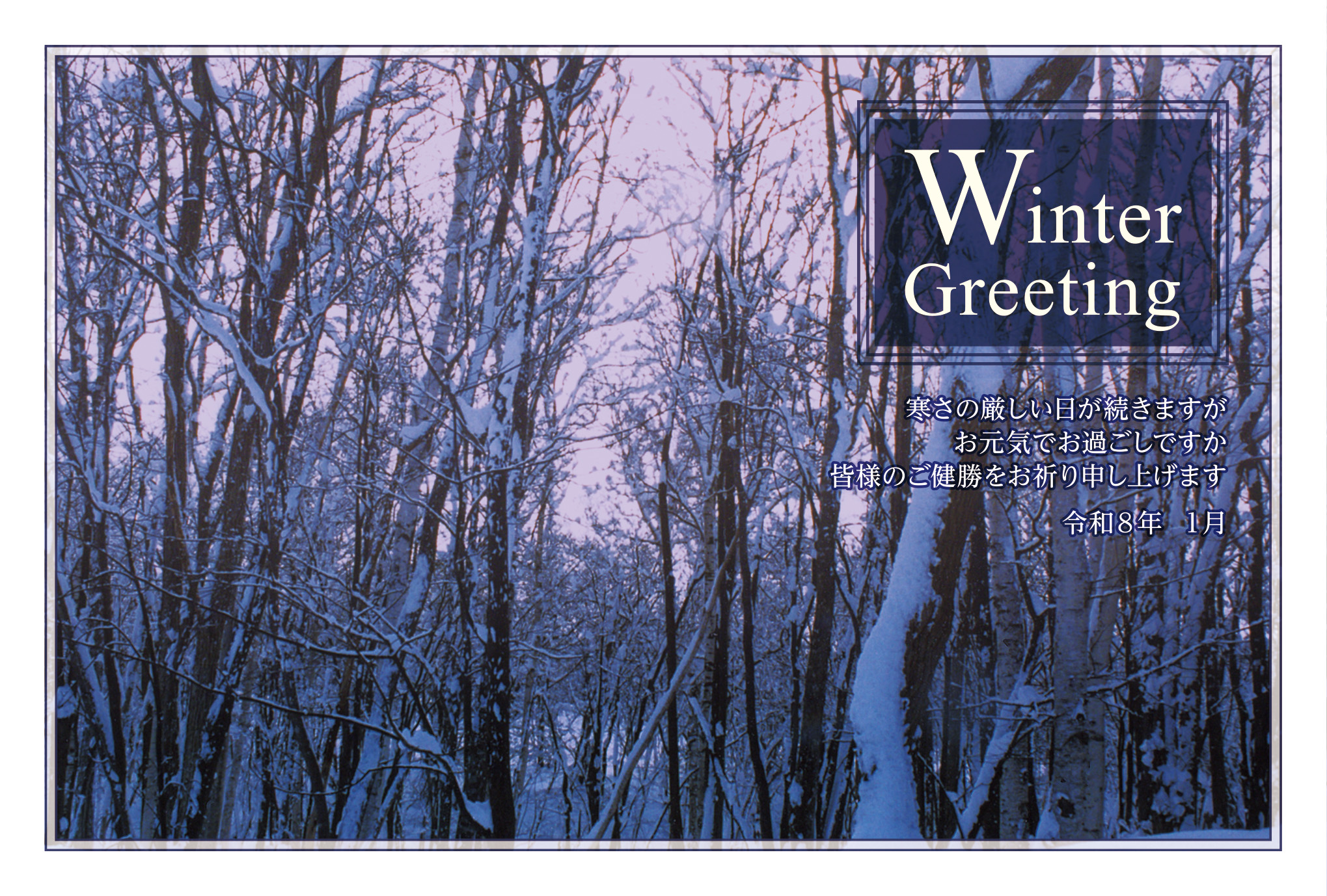 これも昔撮った雪景色。白場がフチしかないので、ご住所等パソコンで入力する場合は、下の方の色が濃い部分に白文字でお願いします。
